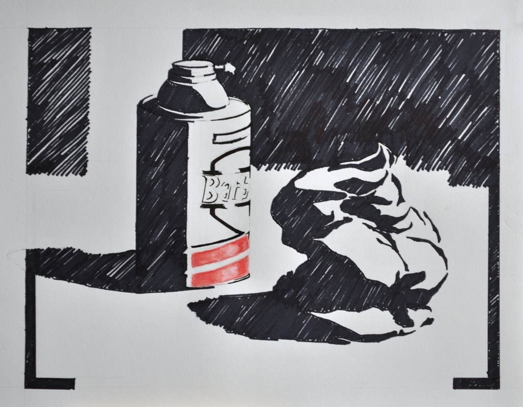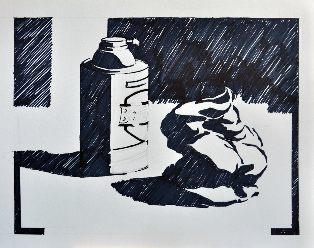 Today, you will continue with Project 2. Review previous videos and assignments to make sure you have completed the Project correctly. Make sure you have a border of either black or white; and your design is drawn correctly, especially the symmetry of the can and the ellipses that make up the bottom and top of the can. Make sure the design feels strong and complete.