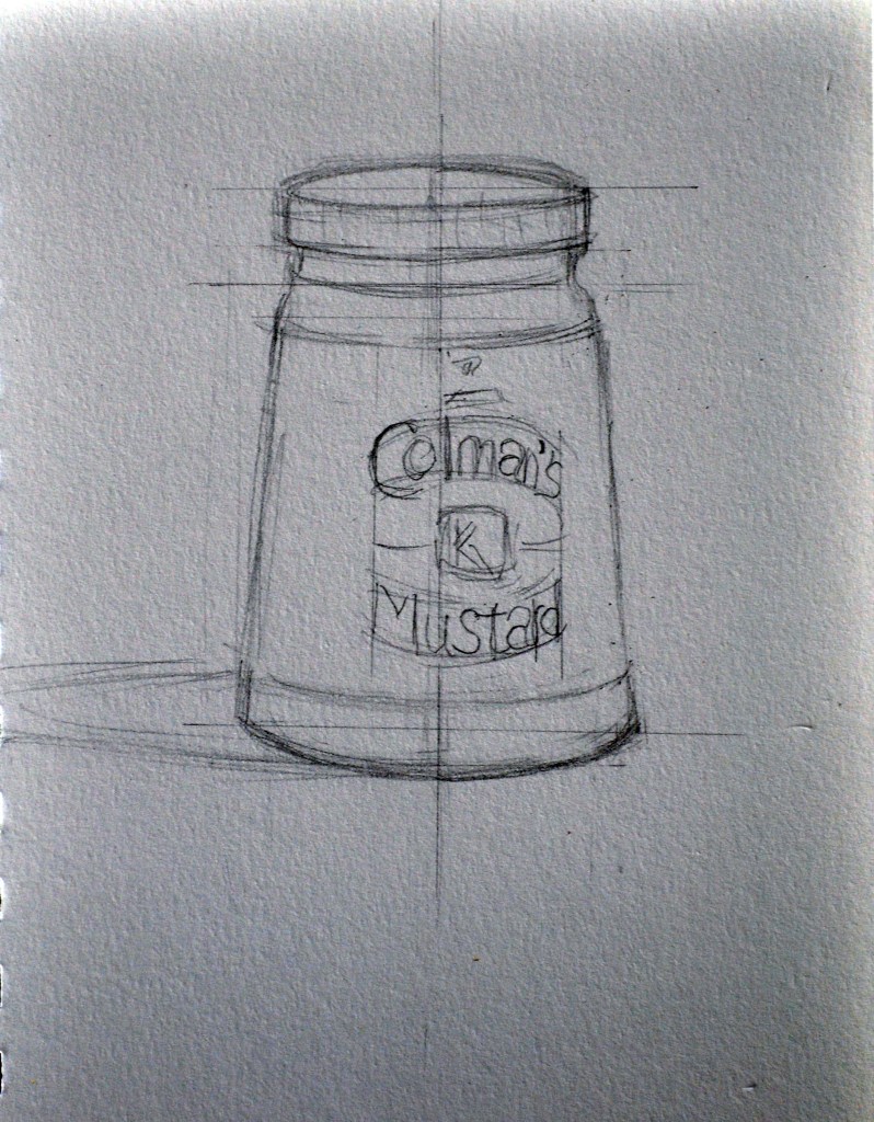 - Render the jar lightly in HB pencil. This is the time to make sure you know how to construct your object i.e. ellipses and symmetrical curves.