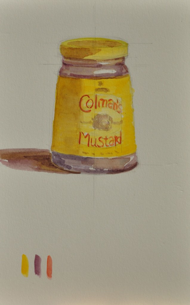 In this exercise, I want you to choose something from your cupboard that has a brightly colored label such as hot sauce, Mexican beans, Italian sauce, mustard etc. Look for something that has a distinct triad of color like yellow, orange, green or red, blue, green. I would like you to look at that object through the lens of 3 main colors- this is what painter’s call an Analogy.