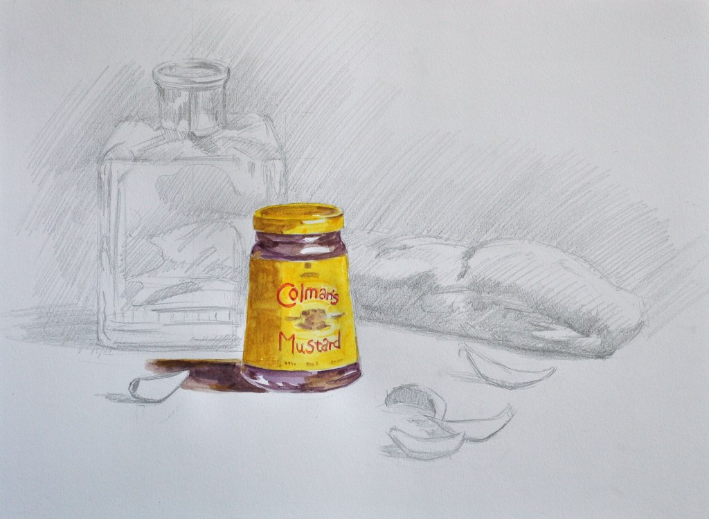 - If you need to review how to do this step, look at my earlier lesson on watercolouring the central object: “Study of Colored Object”