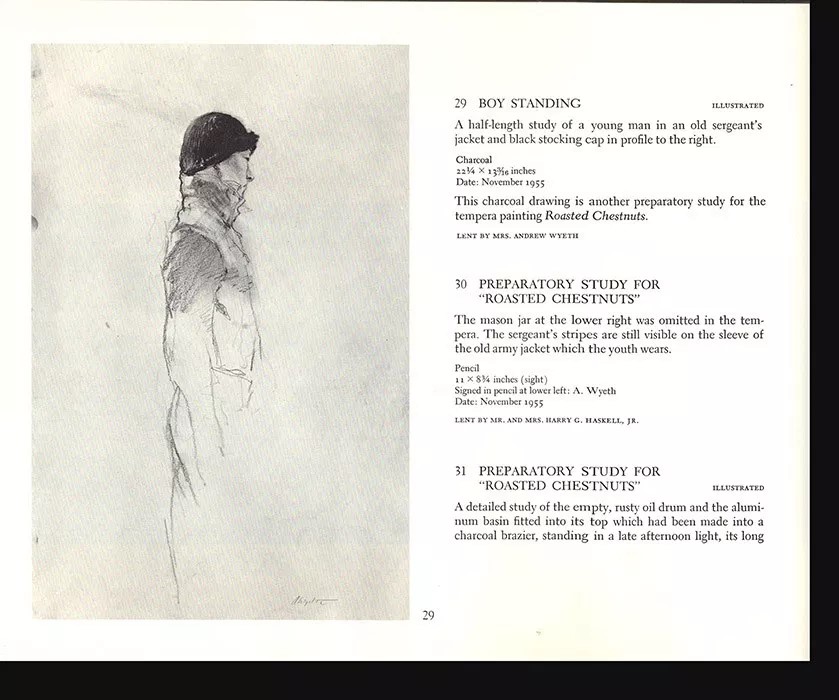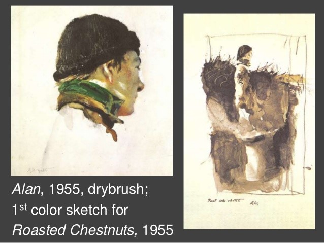 Below, I have examples of thumbnails and studies by Andrew Wyeth for his painting, “Roasted Chestnuts”. This will give you an idea of how to proceed and what to think about.