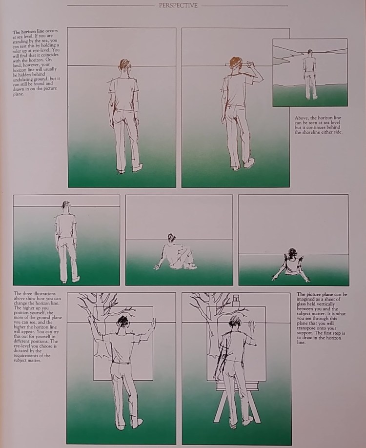 - Large Pad 18×24, presented horizontally and laid flat with both sides open [2 sheets side-by-side so you can extend the horizon line].